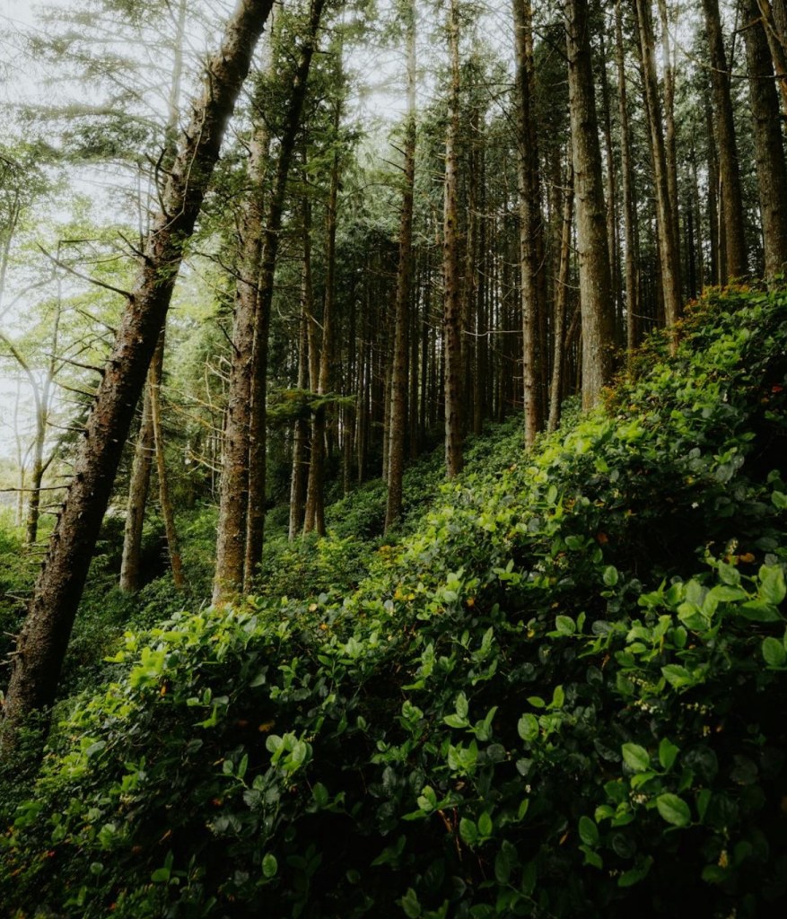 Forest with tall trees.